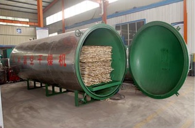 真空狀態(tài),主要利用真空狀態(tài)下水的沸點(diǎn)較低,蒸發(fā)速度加快,木材表面的含水率梯度增大,木材在干燥過程中,一方面表面水分向周圍空氣中蒸發(fā),另一方面內(nèi)部的水分不斷地向表面移動(dòng),所以在較低的溫度下加快了干燥速度,這樣就能保證木材的干燥質(zhì)量。而真空狀態(tài)是一種負(fù)壓狀態(tài),有一定吸水作用,與高頻的壓力梯度正好相似,也加速了木材芯部水分排出,此外,在低壓條件下,干燥介質(zhì)中的氧氣,因熱作用與氧化作用引起的物料變色少,基本上可以保持名貴木材的天然色澤。