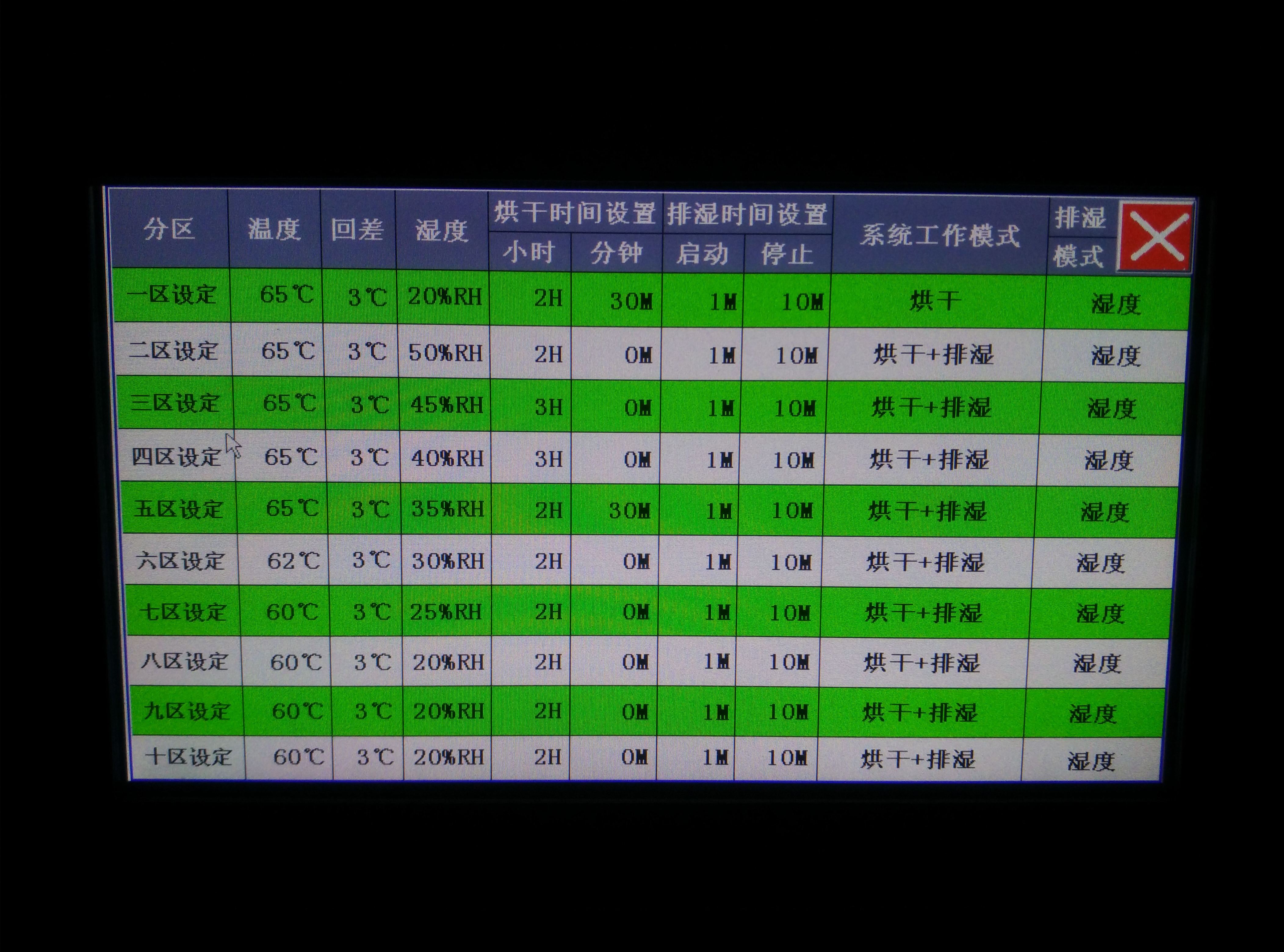 將擺放好黃花菜的物料車推入烘干房內(nèi),設(shè)定好烘干時段,溫度,排濕量,啟動設(shè)備進行烘干。